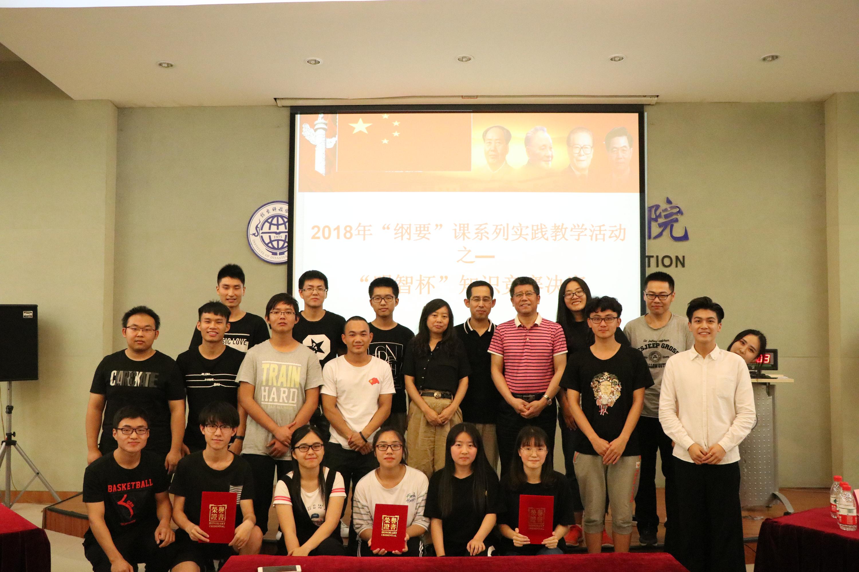 2018年6月14日,由思政课教研部举办的2018年“中国近现代史纲要”课系列实践教学活动之—第六届“明智杯”知识竞赛决赛于图书馆多功能厅举行。这次竞赛由思政部“纲要”课程组主办。思政部部分教师以及2017级的学生观众观看了此次比赛。