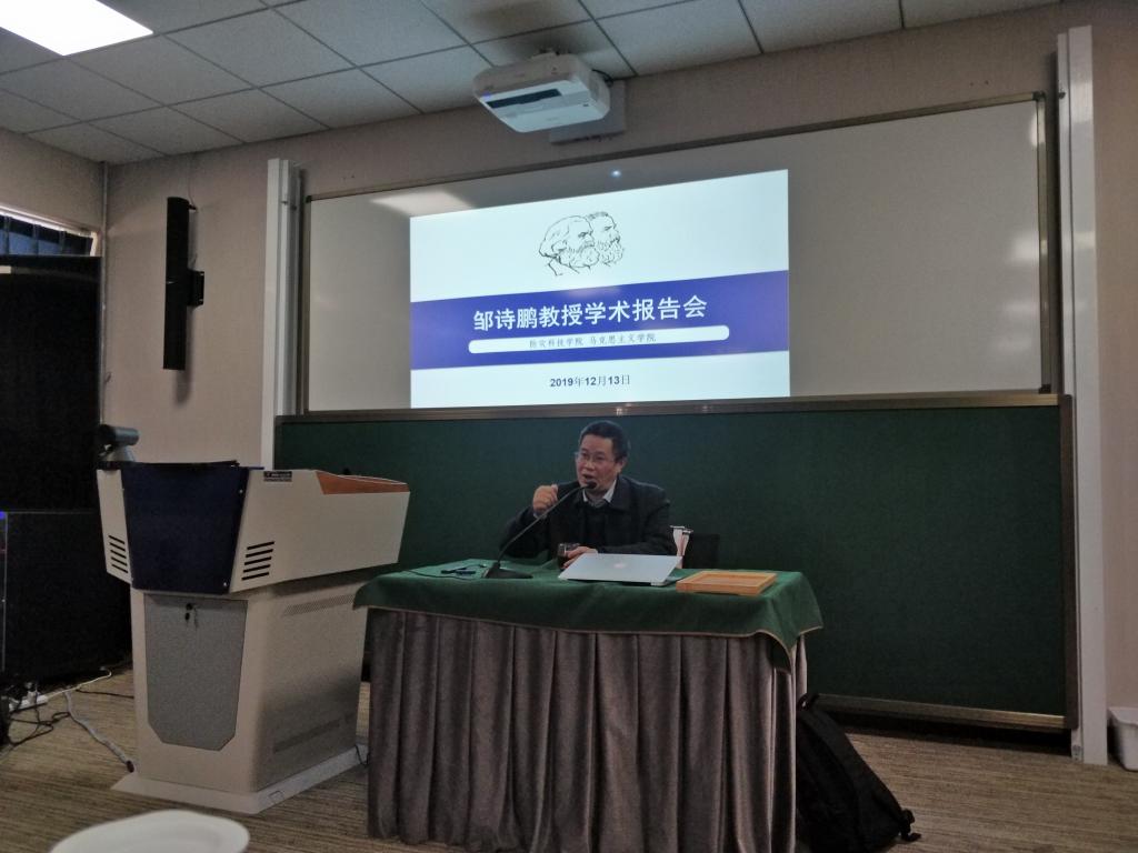 12月13日下午,复旦大学邹诗鹏教授应邀来pp电子做题为“马克思的人民概念”的学术报告,党委宣传部部长贾作璋,pp电子官方网站全体专职教师、部分兼职教师,华北科技学院pp电子官方网站院长唐征友带领部分思政课教师,燕京理工大学思政课教研室主任黄春梅带领部分思政课教师以及部分学生参加了此次报告会,报告会在承基楼智慧教室举行,由pp电子官方网站院长李君主持。