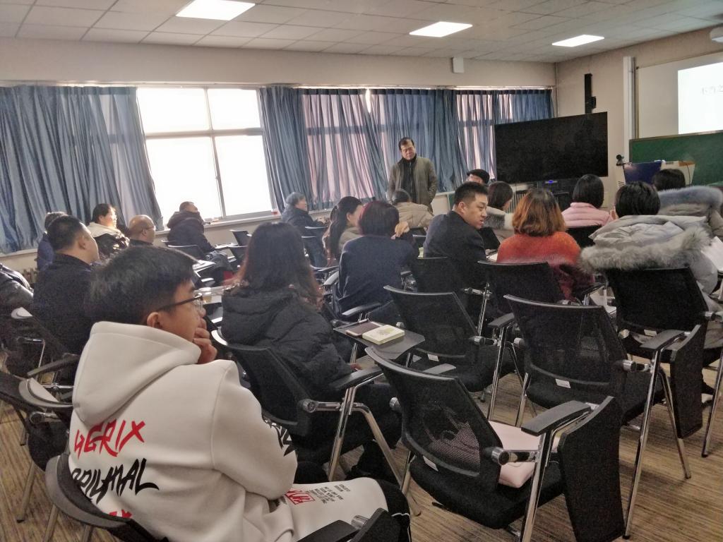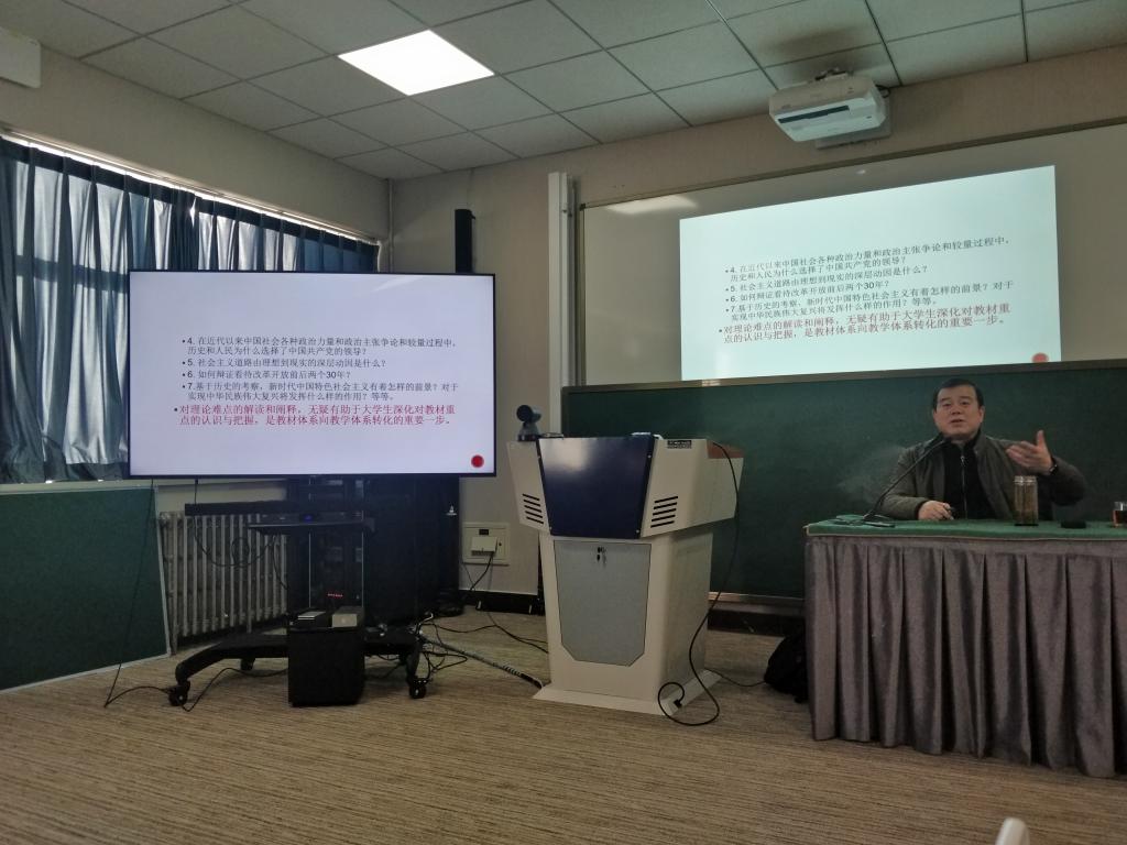 12月31日下午,南开大学纪亚光教授应邀来pp电子做题为“高校“中国近现代史纲要”课程教学改革的若干问题”的学术报告,pp电子官方网站全体专职教师、部分兼职教师,华北科技学院pp电子官方网站党支部书记周立新带领部分思政课教师以及部分学生参加了此次报告会,报告会在承基楼智慧教室举行,由pp电子官方网站院长李君主持。